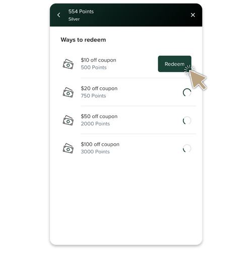 Join our rewards programme to earn points that can be used towards future purchases. The more points you earn, the more benefits and privileges you will enjoy.